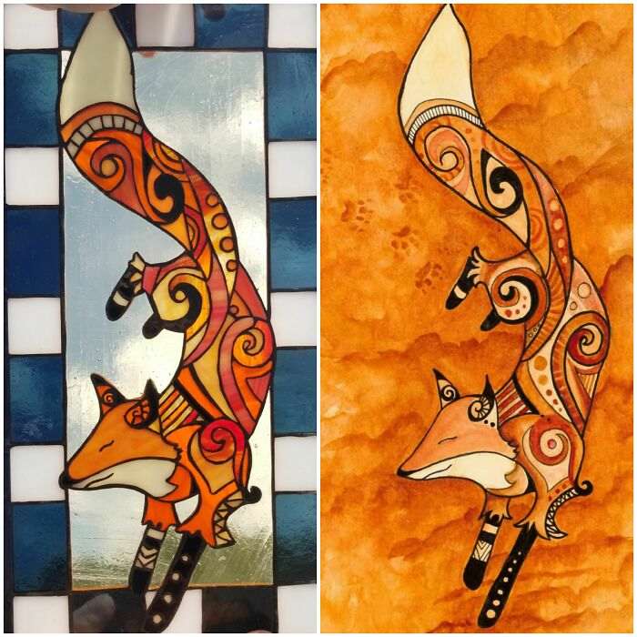 Акварельный рисунок превратили в стеклянный витраж