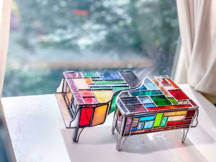 Стеклянные шкатулки в форме пианино