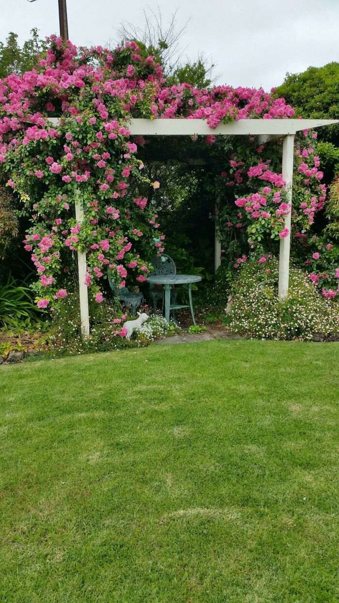 Простая беседка с роскошными розами