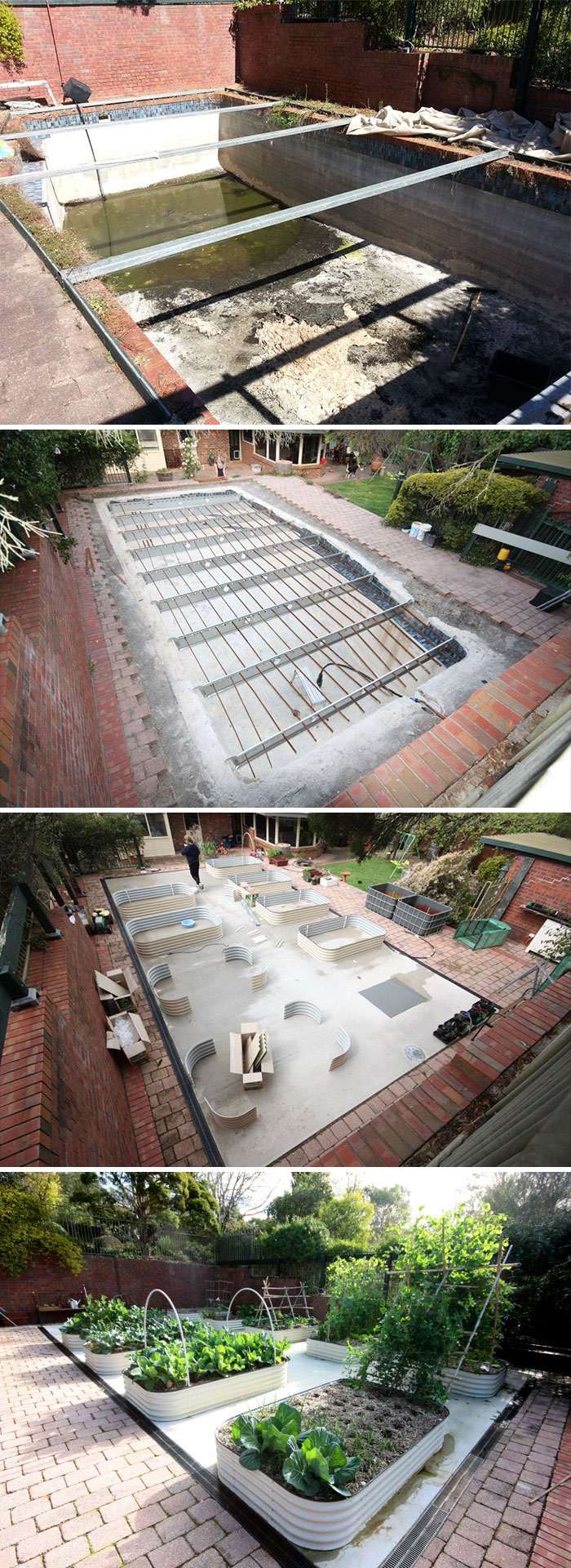 Бассейн превратили в резервуар под дождевую воду с подвесными грядками для овощей