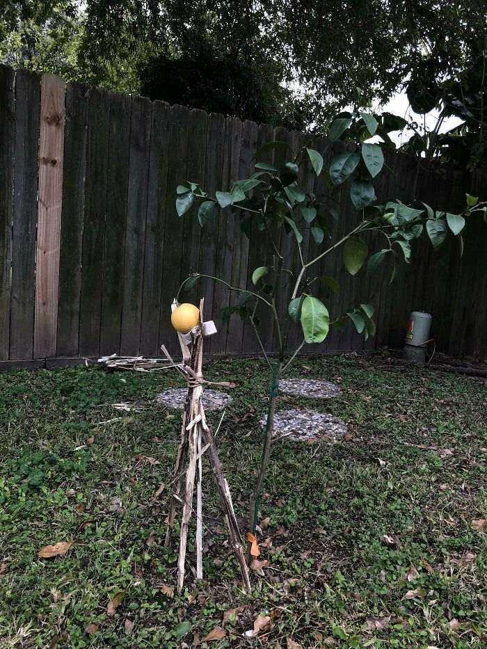 Девушка бережет единственный апельсин, который удалось вырастить
