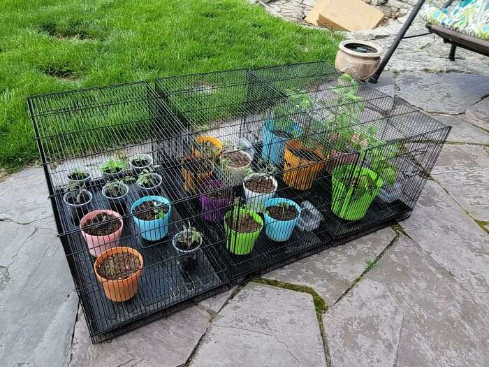 Клетки для птиц защищают растения от зверюшек