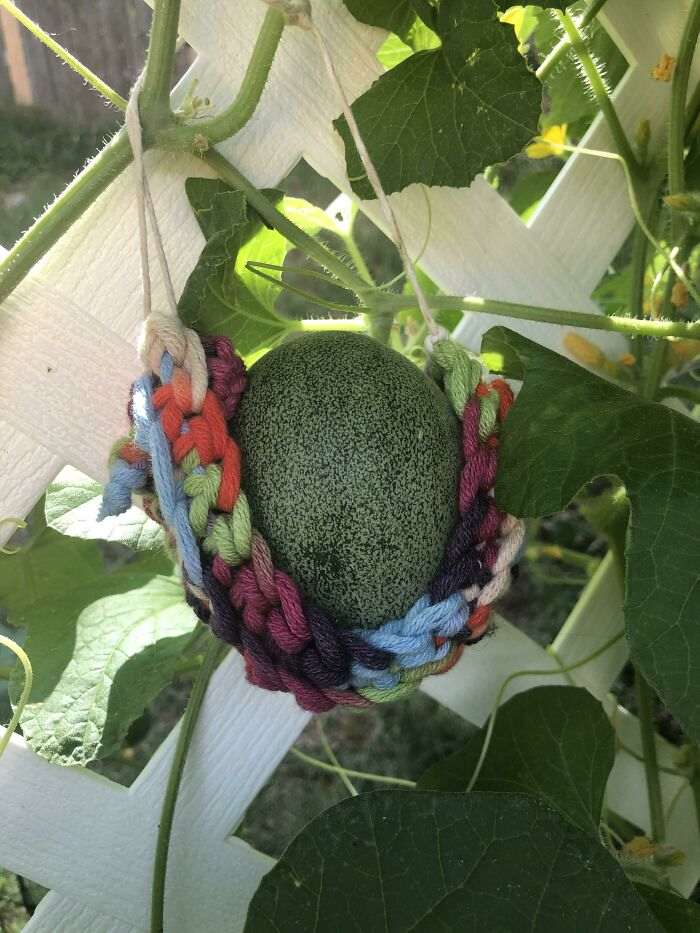 Гамак для поддержки дыни, ручная вязка крючком