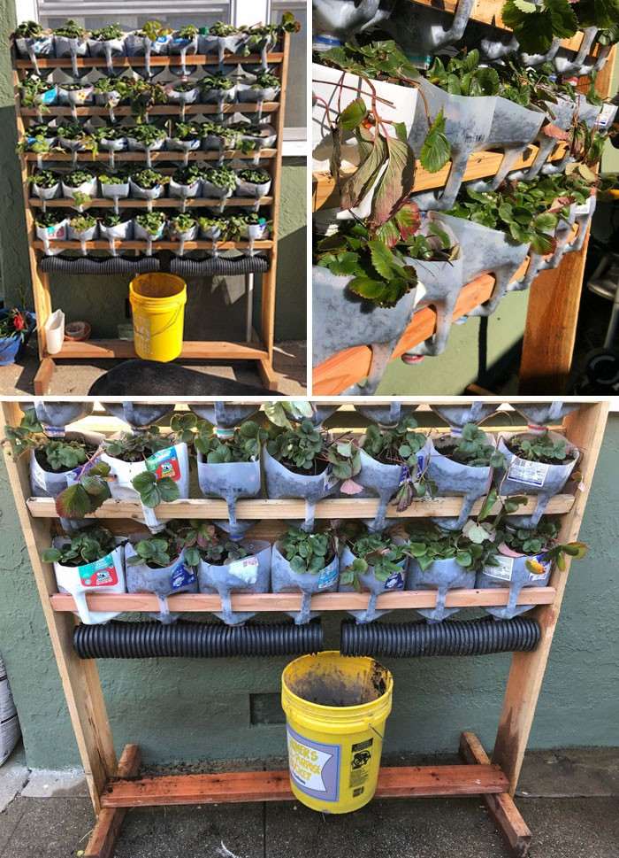 Вертикальный сад клубники из старых канистр