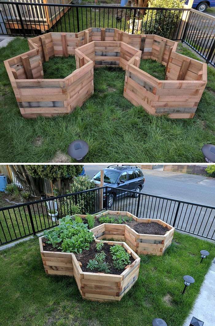 Гексагональная клумба, потрясающе выглядит и легко поливать