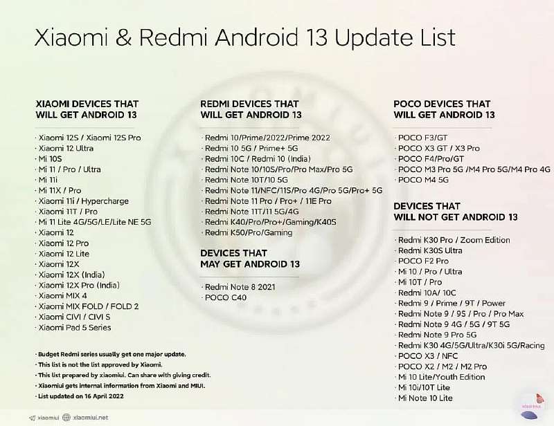 Это данные от профильного портала xiaomiui. Компания еще может пересмотреть перечень и добавить/убрать из него некоторые модели.