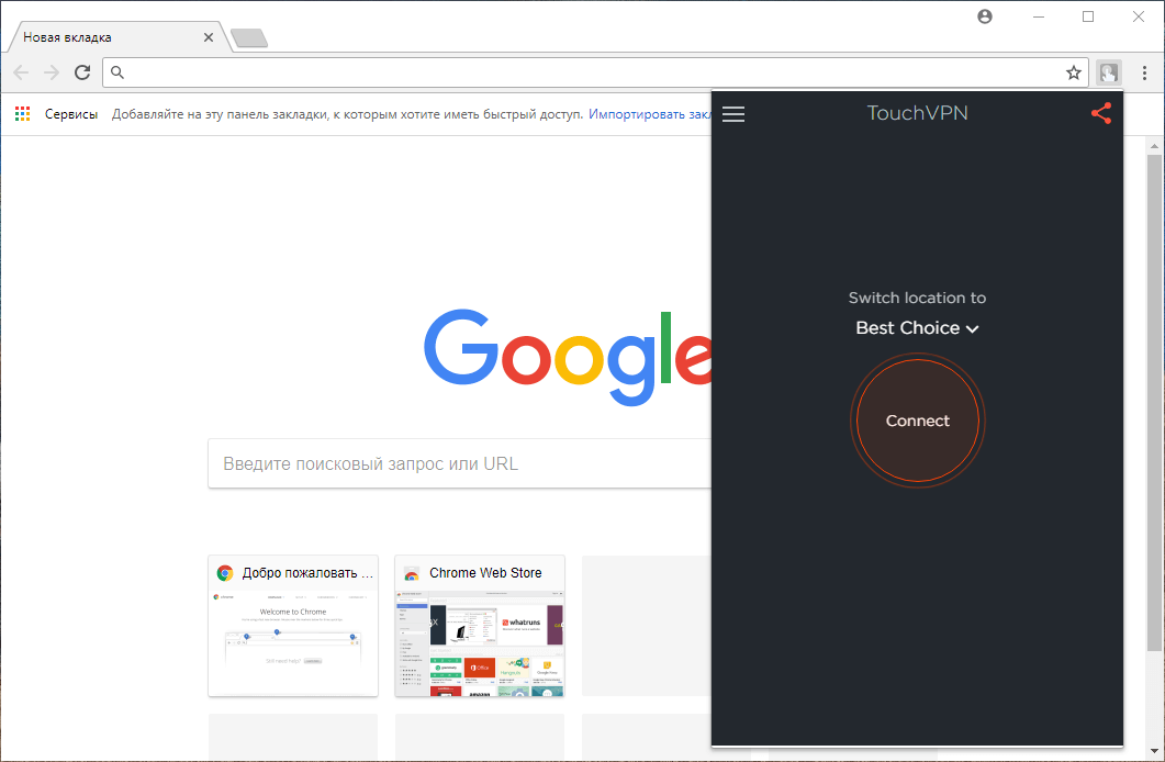 У всех этих расширений есть бесплатные версии, которых вполне хватает для работы. Применять их просто: устанавливаем и по необходимости включаем с помощью кнопки быстрого доступа. В некоторых (например — в Touch VPN) можно выбирать, под какую страну замаскировать ваш IP-адрес.