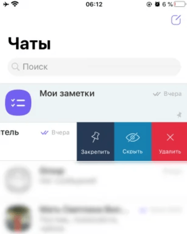 Как это сделать: на нужном диалоге надо зажать пальцем (Android) или смахнуть влево (iOS), в появившемся меню выбрать Скрыть, и придумать ПИН-код для доступа.