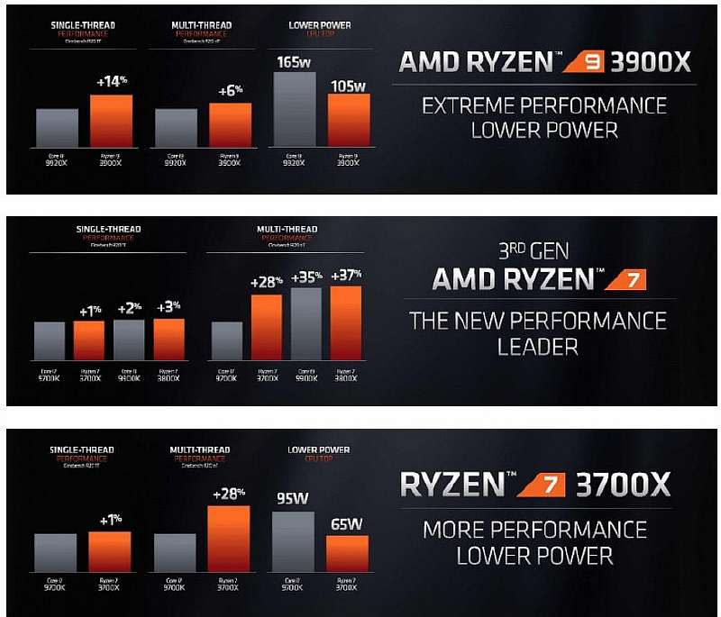 Сравнили серию AMD Ryzen 3000 и с конкурирующими моделями от Intel, где красные получили преимущество почти по всем статьям.
