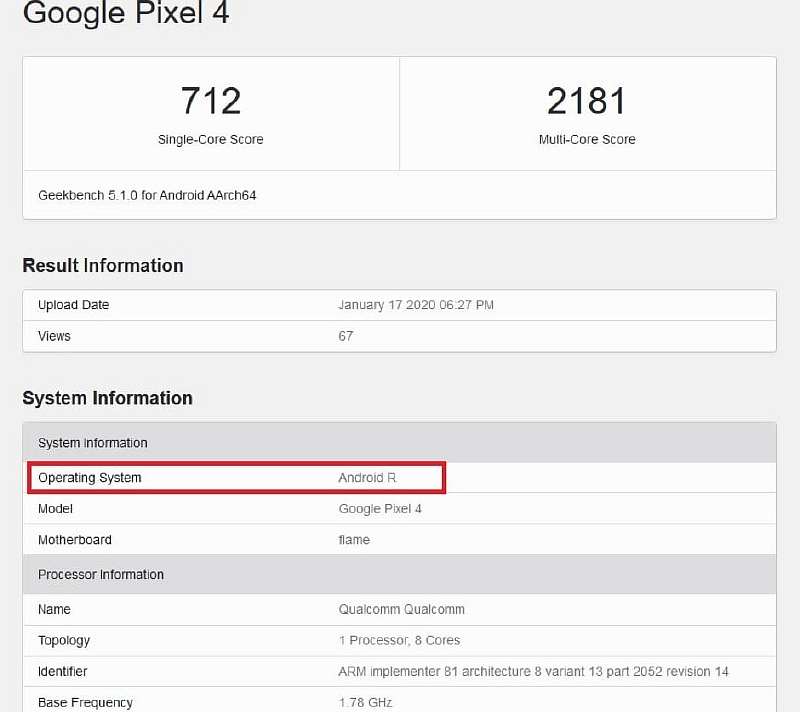 2020 год только начался, а новая версия ОС Android уже не за горами. На это указывает появление в базе данных Geekbench результатов тестирования Pixel 4, который работает под управлением Android R – одиннадцатой версии операционной системы от Google.