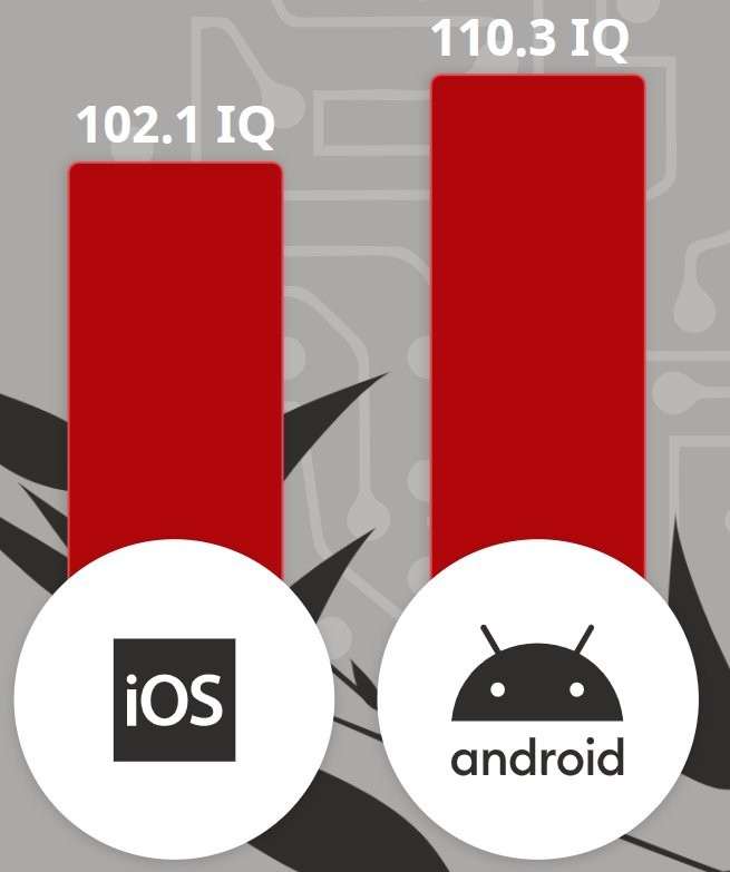 Оказалось, что самые «умные» пользователи смартфонов предпочитают Android. Их средний IQ равен 110.3 балла, тогда как у любителей айфонов и iOS — 102.1.