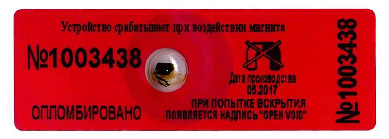 Пленочные. Выглядит как обычная наклейка, но с подвохом — в ее клеящий состав входят частицы из материала, взаимодействующего с магнитным полем. Как только к счетчику подносят магнит, частицы меняют свое положение, а сама наклейка темнеет. И проверяющий сразу узнает, что счетчик подвергался внешнему воздействию.