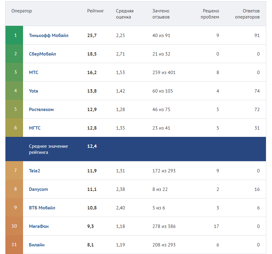 Чтобы вы не думали, что мы просто так наговариваем на желтых, посмотрите на народный рейтинг российских мобильных операторов. Этот рейтинг составлялся на основе отзывов посетителей популярного сайта banki.ru, делящихся своим мнение о той или иной компании. Причем все оценки проходили строгий отбор — личный опыт засчитывался, а явные попытки выставить одного из операторов в заведомо худшем или лучшем свете игнорировались.