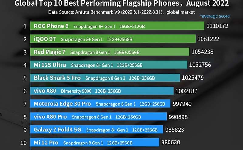 Компания AnTuTu представила рейтинг самых производительных Android смартфонов за август. Как и месяцем ранее, на рынке доминируют устройства, оснащенные чипсетами Snapdragon 8 Gen 1 и Snapdragon 8 + Gen 1. Лишь один гаджет из десяти построен на базе другого процессора.