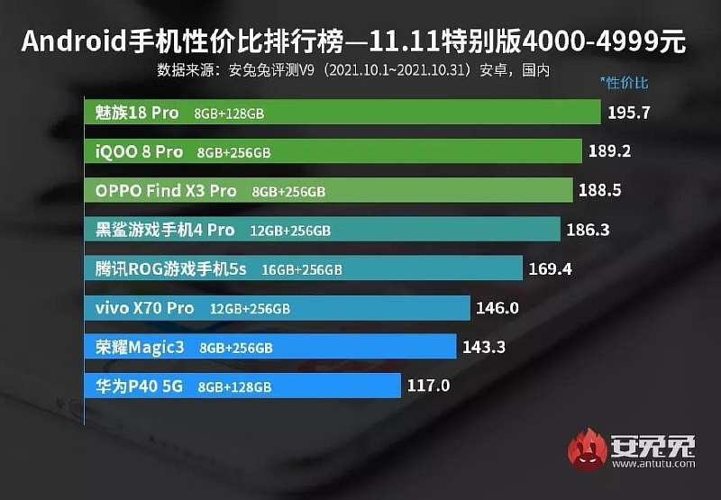 Интересно, что рейтинг субфлагманов ценой до 4 999 юаней (~ 55 000 рублей) тоже возглавил Meizu, модель 18 Pro. За ним следуют iQOO 8 Pro и OPPO Find X3 Pro.
