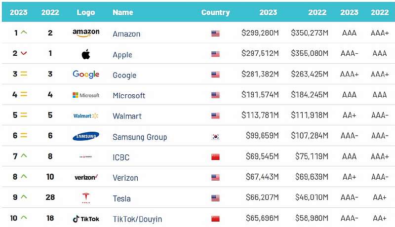 Но пока одни теряют, другие приобретают. Кризисный год не помешал Google увеличить свою стоимость с $263.42 миллиарда до $281.38 миллиардов, прочно закрепившись на третьей строчке. Все шикарно и у некоторых автопроизводителей, цена Tesla выросла на целых 44% до $66.2 миллиардов, а китайская компания BYD стала дороже на все 57% и теперь оценивается в $10.1 миллиард.