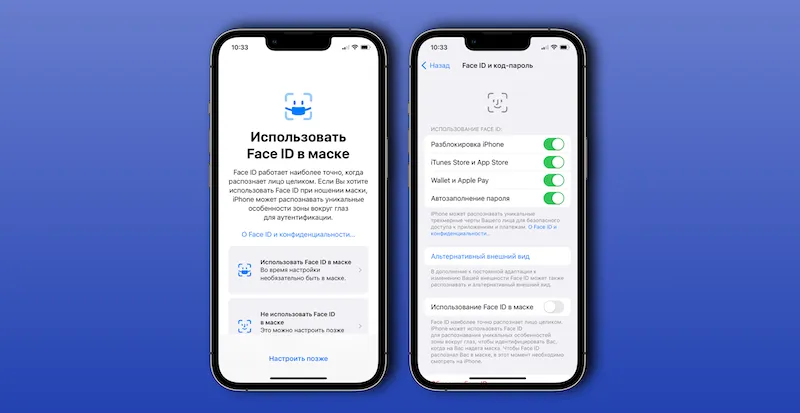 Для активации нужно зайти в настройки, далее проследовать по маршруту «Face ID и код-пароль» > «Использовать Face ID с маской». В настоящее время функция доступна только на iPhone 12 и 13, и не понятно, добавят ли ее на более старые устройства. Сами модули Face ID во всех вышедших ранее моделях абсолютно одинаковые.