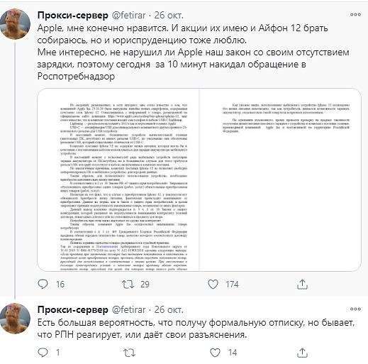 Пользователь твиттера под ником fetirar не растерялся и накатал жалобу в Роспотребнадзор, а уж этим господам дай только повод. По словам юзера, помимо любви к продукции бренда и желанию прикупить новый двенадцатый айфон, он к тому же является акционером компании и кое-что понимает в юриспруденции.