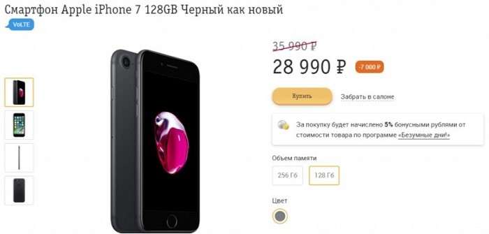 Можно взять и iPhone 7 128 ГБ, его цена снижена с 35 990 до 28 990 рублей.