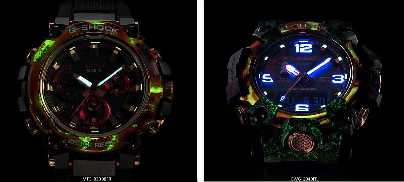 Более современный дизайн имеют модели G-SHOCKS B3000FR и GWG-2040FR. Они комбинируют круглый циферблат, цифровой дисплей и аналоговые стрелки.