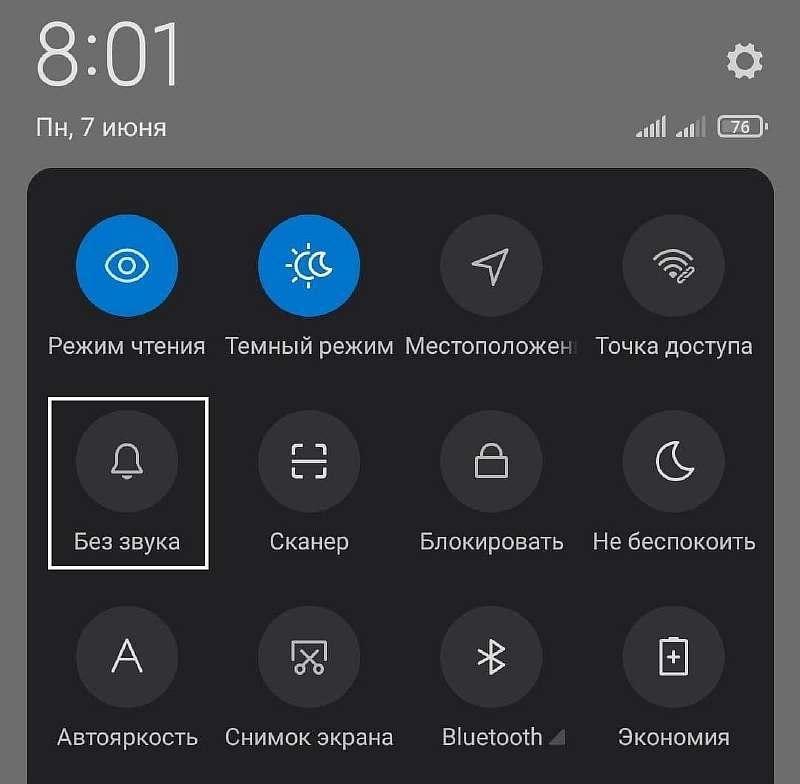 - С помощью кнопок регулировки звука на корпусе, просто снизив громкость к минимуму, или кликнув на специальную иконку — колокольчик: