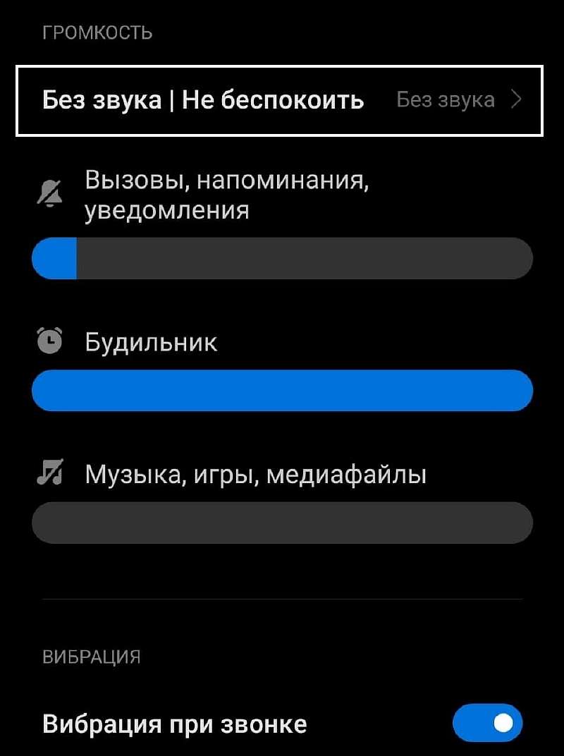 Стандартные настройки беззвучного режима можно изменить: например, отключить вибрацию, или наоборот установить минимальную громкость уведомлений, чтобы даже в бесшумном режиме входящий звонок был слышен. Делается это в меню настроек «Звук и вибрация».