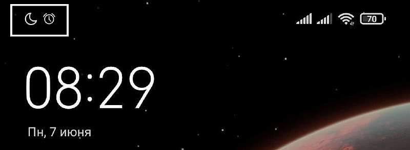 Когда «не беспокоить» активен, в строке состояния появляется иконка с луной.
