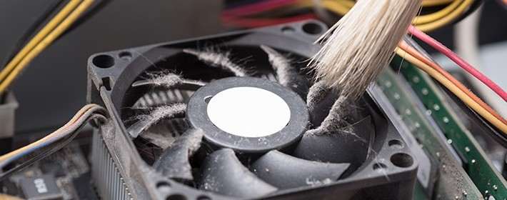 Из-за пыли, которую вы ленитесь убирать. Делать это часто — не нужно: достаточно раз в 4-6 месяцев потратить минут 15 на чистку. с помощью пылесоса или баллона с сжатым воздухом. Причем не надо вычищать все до зеркального блеска — достаточно просто убрать основные залежи, и все.
