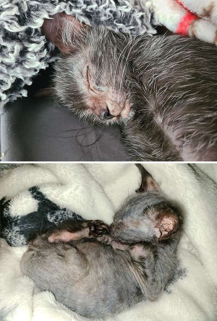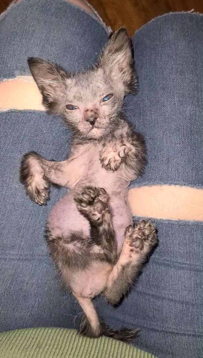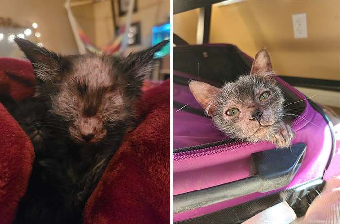 Вскоре Бри заметила, что один котенок разительно отличается от других. Он казался очень хрупким, а шерсть как будто выпадала с него клочками. Бри незамедлительно отвезла питомца к ветеринару, но тот только развел руками. При всей своей необычной внешности котенок был абсолютно здоров. Точнее, здорова, потому что это оказалась кошечка, которую чуть позже назвали Грейси.