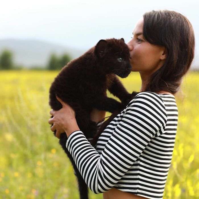 Очаровательная история из Сибири. Черная пантера Луна родилась в передвижном сибирском зоопарке. Ей очень не повезло — уже на седьмой день после рождения мать отказалась кормить Луну. А работники зоопарка слишком поздно заметили, что котенка буквально вышвырнули из гнезда. Это привело к проблемам со здоровьем, Луне потребовались лекарства для восстановления и особый уход, которого в зоопарке обеспечить не могли.