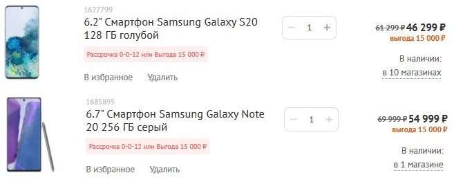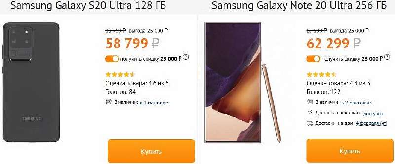 А вот самые крутые скидки действуют на топовые версии флагманов Ultra. DSN выставила Galaxy S20 Ultra 128 ГБ за 58 699 рублей, такой даже у серовозов стоит от 68 тысяч. А роскошный Galaxy Note20 Ultra сливают за 62 499 рублей –космическое предложение с учетом того, что дешевле 76 тысяч он сейчас не стоит вообще нигде.