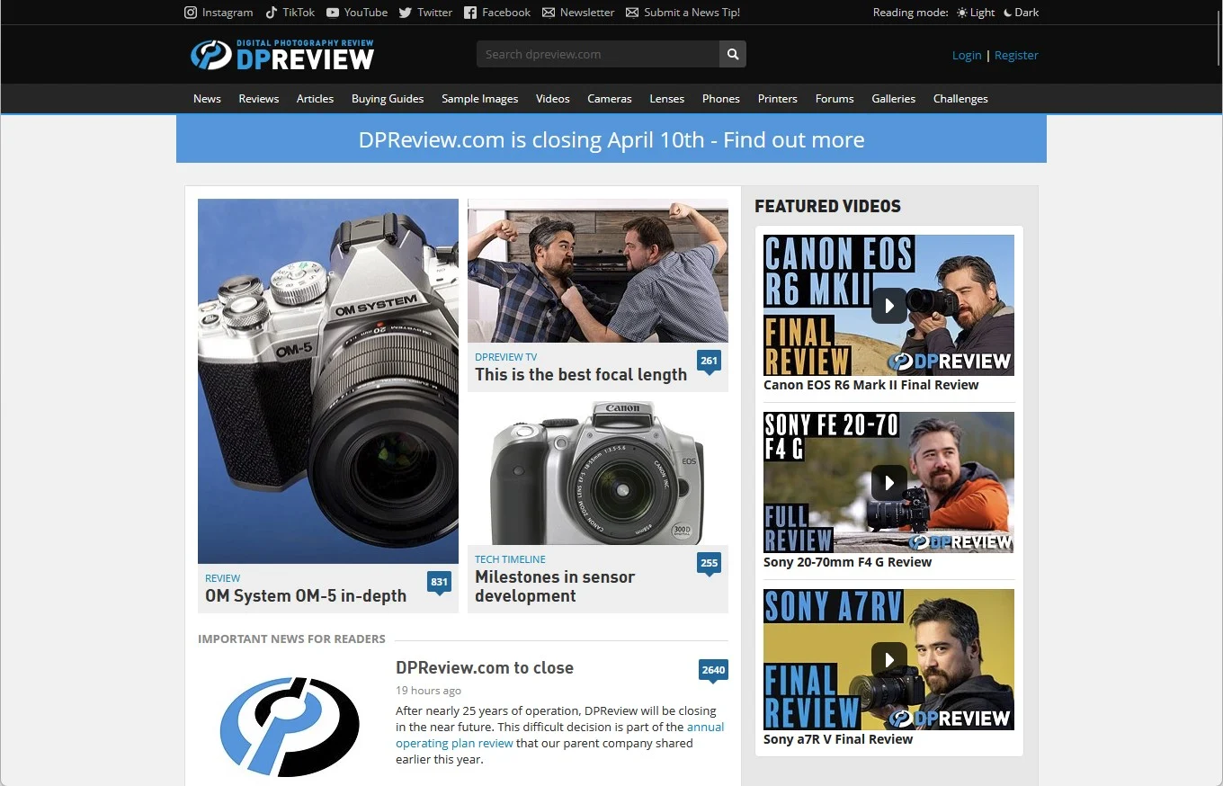 DPreview.com закрывается. Самый известный сайт о камерах не пережил сокращений Amazon