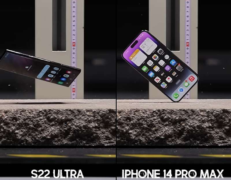 Дроп-тест сравнение: Samsung Galaxy S22 Ultra против iPhone 14 Pro Max