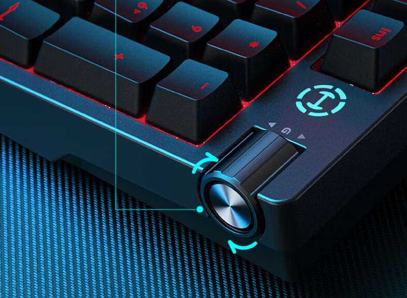 Клавиатура имеет раскладку из клавиш 97 с матовыми PBT-кейкапами, подставку с тремя уровнями высоты и настраиваемую RGB-подсветку с 16.8 миллиона оттенков. Также есть встроенный металлический ролик, который позволяет быстро регулировать громкость, яркость подсветки и другие функции.