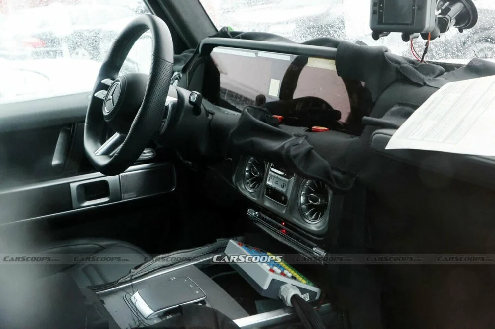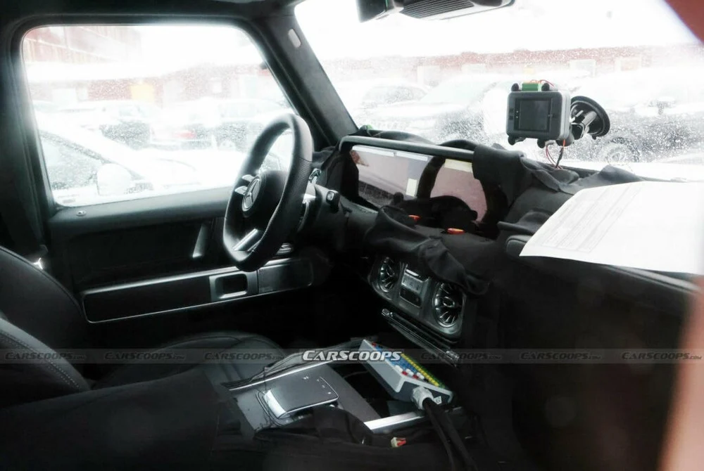 Также недавно появилась серия шпионских фото, демонстрирующих убранство салона. Он будет иметь много общего с интерьером последних версий классического «гелика». В частности, на приборной панели доминирует большой экран, объединяющий цифровую приборку и информационно-развлекательную систему MBUX.
