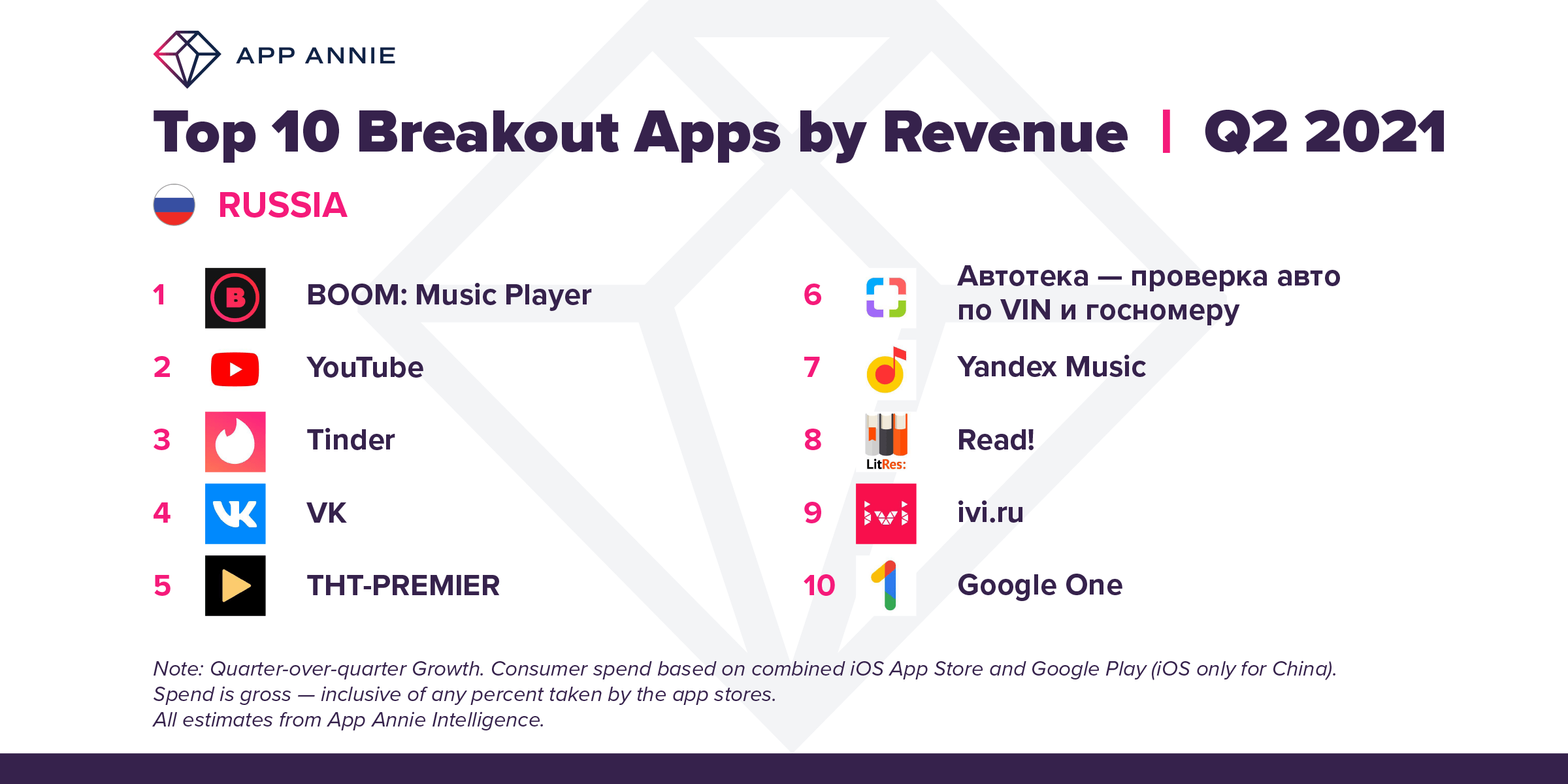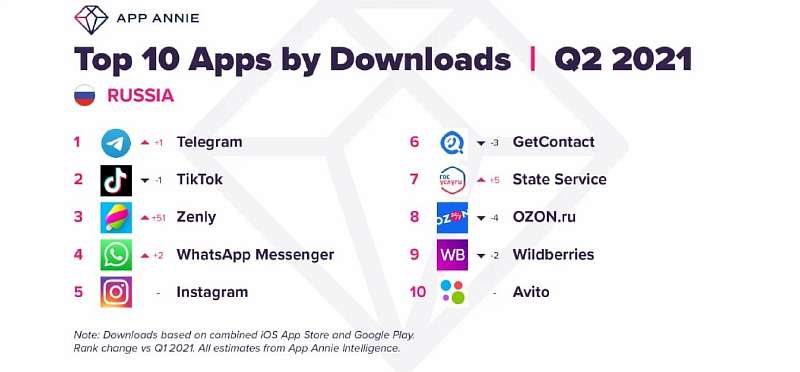 Второе место досталось TikTok, который в аналогичном топе кварталом ранее занимал первое место, а замкнул тройку французский сервис Zenly, показывающий местоположение друзей на карте города. Программа поднялась сразу на 51 строчку и продолжает активно набирать пользователей