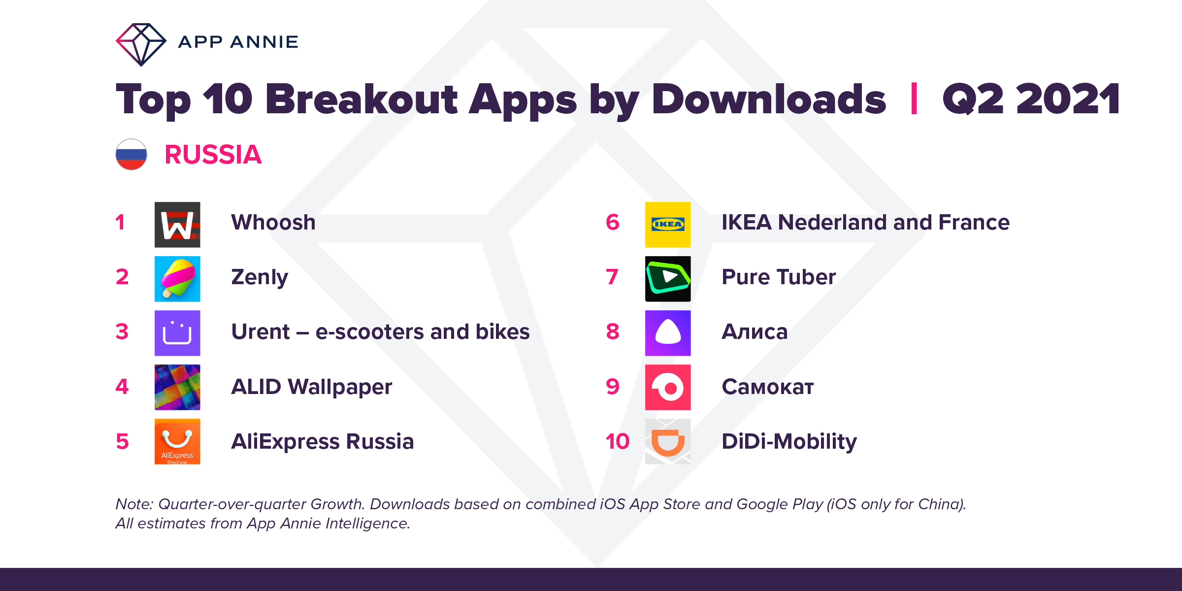 В списке самых быстрорастущих приложений на первом месте находится сервис аренды электросамокатов Whoosh, на втором уже упоминавшийся в статье Zenly, а на третьем – Urent, еще одна приложуха с самокатами.