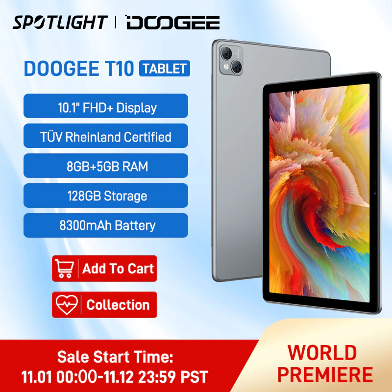 Планшет DOOGEE T10 уже доступен в официальном магазине бренда на AliExpress, но мировая премьера состоится 1 ноября 2022 года. Стартовая распродажа продлится до 12 ноября, во время которой DOOGEE будет продавать планшет по сниженной цене 100$. Также к новинке выпустили стилус и чехол-клавиатуру, но их придется покупать отдельно.