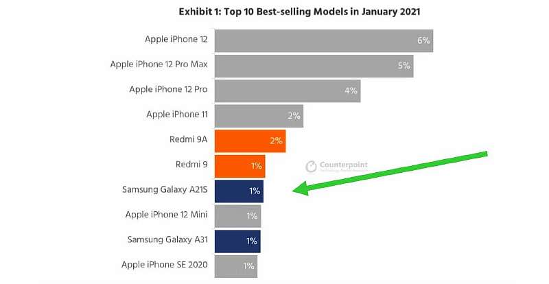 Речь идет о Samsung Galaxy A21s. Это бюджетный аппарат, который в течение последнего года бьет рекорды продаж и является самым востребованным телефоном компании во всем мире.