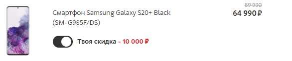Galaxy S20+ при таких раскладах будет стоить 63 990 рублей, а выбранный вами аксессуар подешевеет на тысячу рублей, что тоже довольно выгодно. Вот ссылки на обычный Galaxy S20 и S20 Ultra, на которые в МТС действует аналогичная акция.
