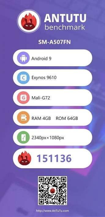 В AnTuTu A50s замечен в конфигурации с 64/4 ГБ памяти, смартфон заработал чуть более 151 тыс. баллов. Более конкретной информации о камерах, объеме аккумулятора и других особенностях устройства тест не несет. О них мы оперативно напишем по мере появления новых утечек.