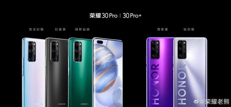 Honor 30 Pro будет продаваться в черном, фиолетовом, серебристом и зеленом цвете. Версия с 8/128 ГБ памяти будет стоить 565$, а 8/256 ГБ — 620$.