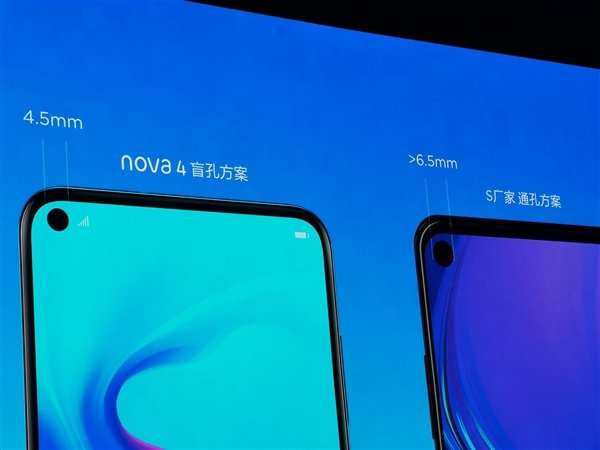 Huawei Nova 4 располагает безрамочным 6.4 дюймовым дисплеем с разрешением 2310х1080 пикселей, который занимает 91.8% площади фронтальной панели. Впечатляющая безрамочность достигнута за счет использования встроенной под стекло дисплея фронтальной камеры на 25 МП. На презентации Huawei акцентировали внимание на том, что в Nova 4 применяется самый маленький селфи-модуль среди аналогов, диагональ выреза под фронталку составляет всего 4.5 мм (для сравнения в Galaxy A8S – 6.5 мм).