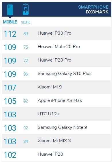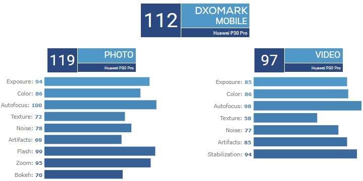 Huawei P30 Pro с отрывом возглавил рейтинг лучших камерофонов DxOMark