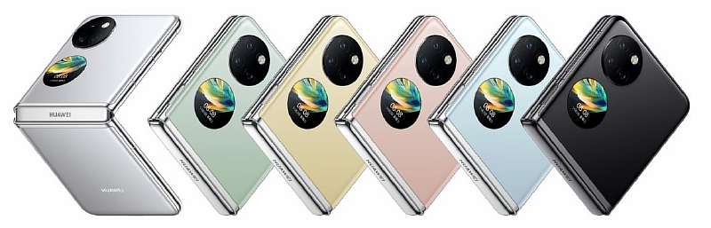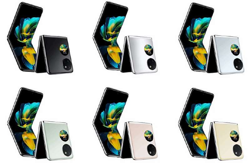 Новинка будет доступна в пяти цветах. Все они, в отличие от Huawei P50 Pocket, без градиентов, это: мятный зеленый, золотисто желтый, розовый, синий и черный.