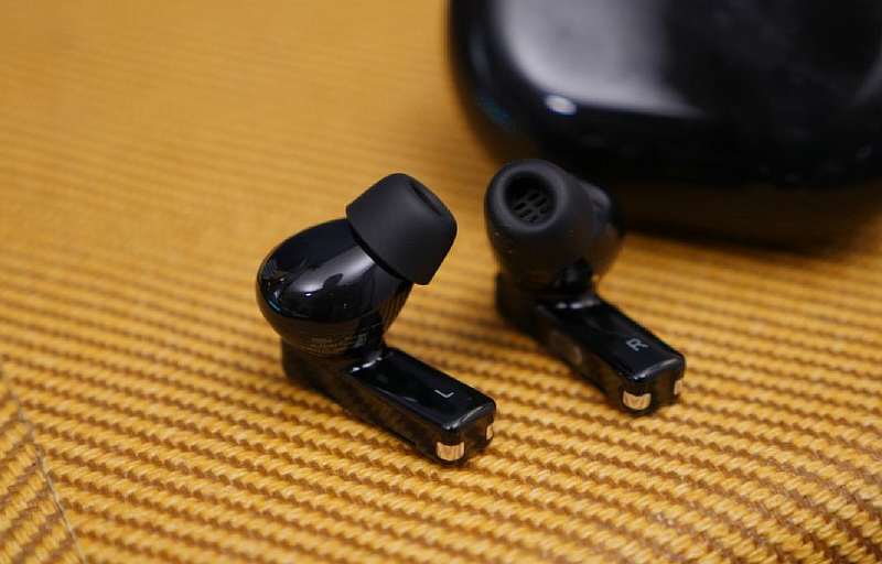 Аксессуар получил необычный дизайн: ножки имеют прямоугольную форму с острыми гранями, их внешняя поверхность — сенсорная, позволяет управлять громкостью, переключать треки, принимать звонки.