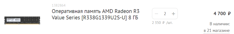 Оперативка, 2х8 Гб, мы выбрали Radeon R3 за 4700 р.: