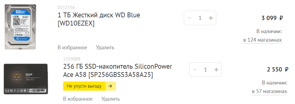 И SSD+HDD, самые простые, но от более-менее нормальных производителей, итого на 5600 р.: