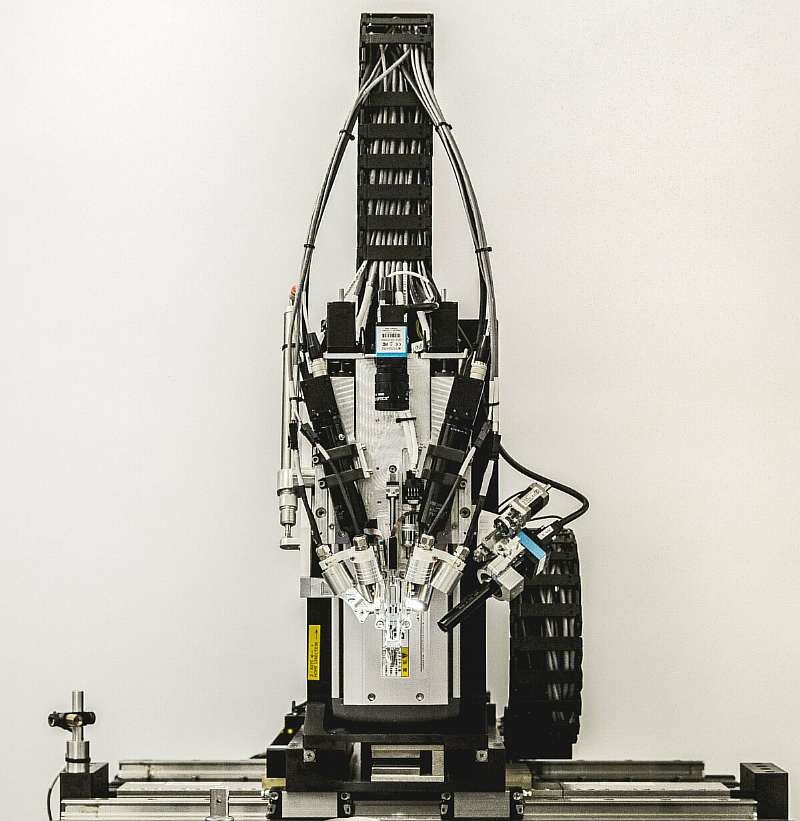 Робот-хирург, который будет вживлять электроды, тоже является детищем Neuralink. По словам разработчиков — это смесь швейной машинки и микроскопа (поскольку электроды очень тонкие — примерно 1/3 диаметра самого тонкого волоса человека).