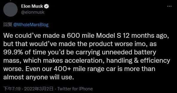 Илон Маск заявил, что электрокары с большим запасом хода не нужны. Почему?